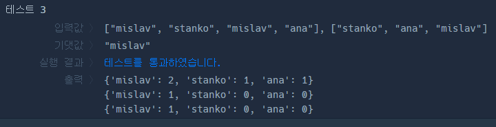 딕셔너리를 만들어서 key값이 없으면 1을 있으면 +=1 을 하였다.