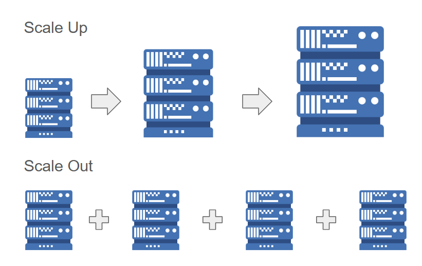 | 정의 | 기존 시스템의 성능을 강화하여 처리 능력을 높이는 방식. ex) 서버에 더 강력한 CPU, RAM, 디스크를 추가 |