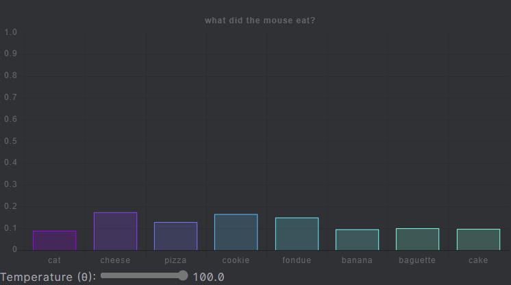 - 온도(Temperature)는 Softmax Regression의 각 다음 토큰이 샘플링시에 뽑힐 확률을 뾰족하게 만들어 주거나 평평하게 만들어준다.